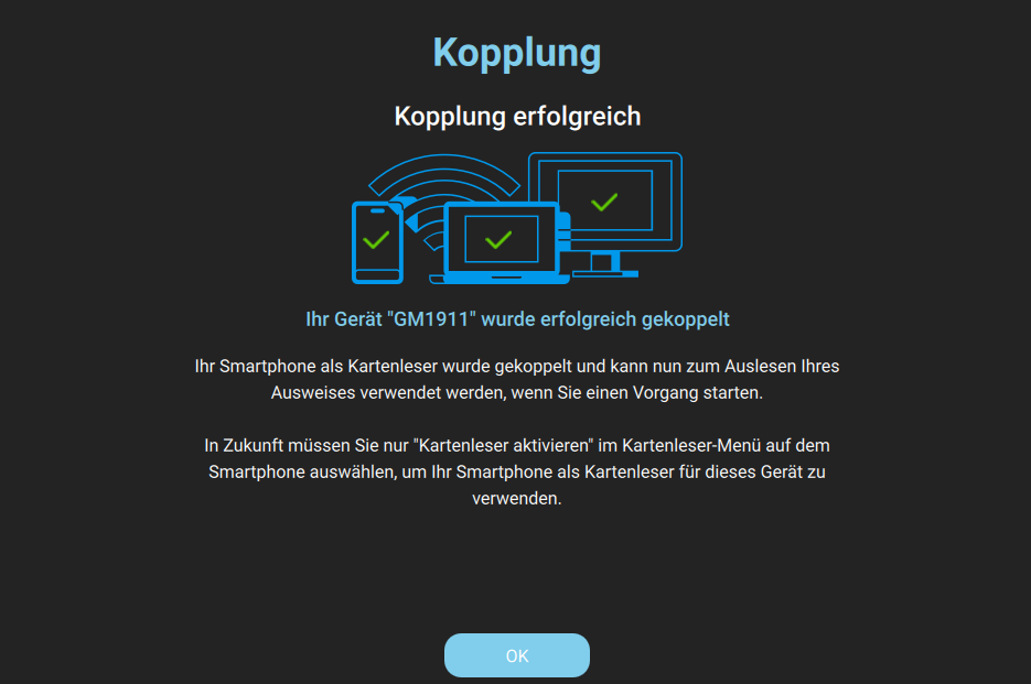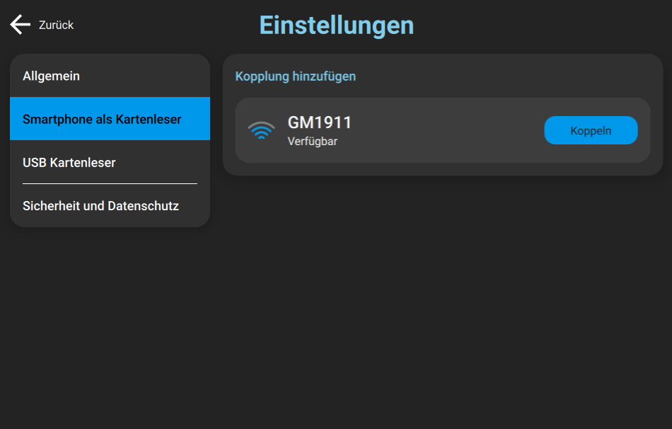 - Nun gehen Sie in der AusweisApp auf Ihrem Smartphone auf die Rubrik „Kartenleser“ und “ Gerät koppeln“