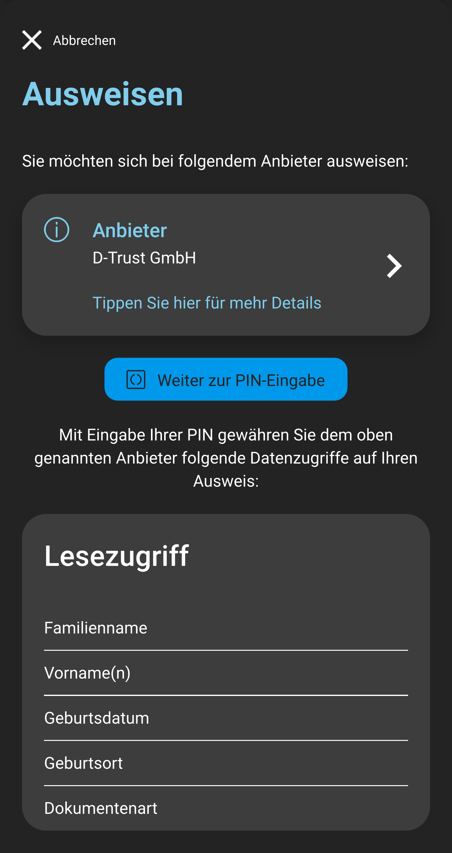 Schritt 5: Nachdem sich die AusweisApp geöffnet hat, klicken Sie auf „Weiter zur PIN-Eingabe“.