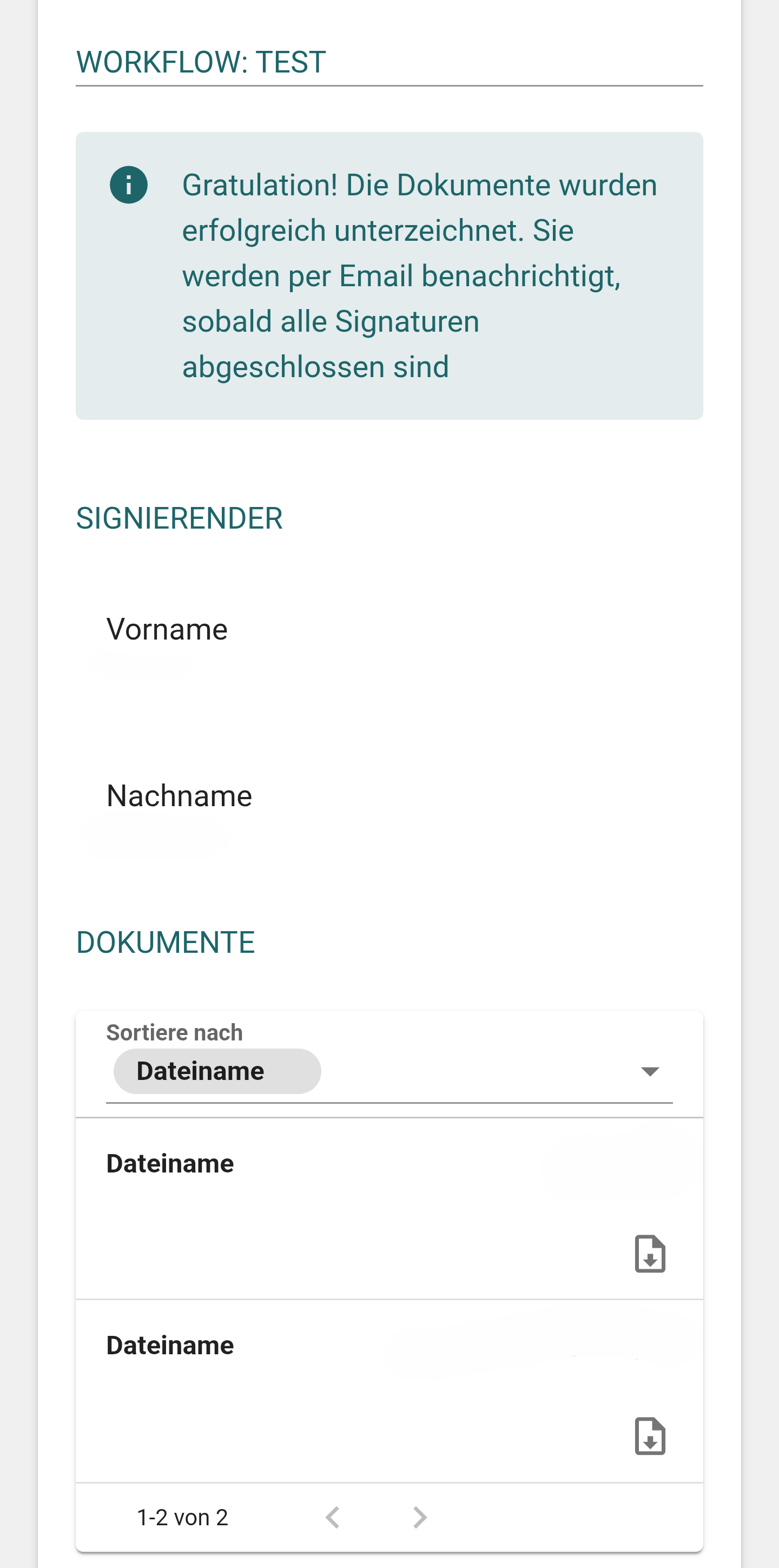 Step 10: Congratulations! After you have clicked on ‘Sign now’, your workflow is completed and you can download your qualified signed document.